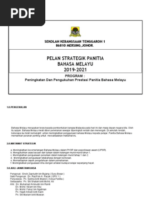 Pelan Strategik Panitia Bahasa Melayu 2017 2018 Pdf